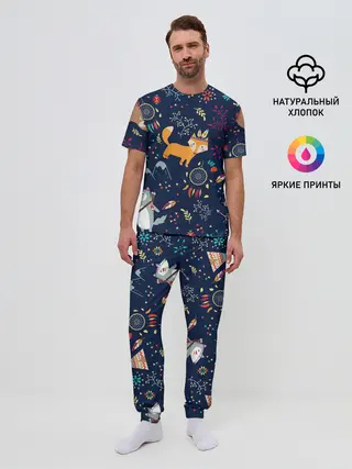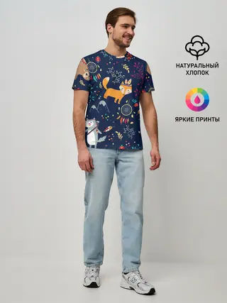 Мужская футболка оверсайз / Звери природа индейцы этно