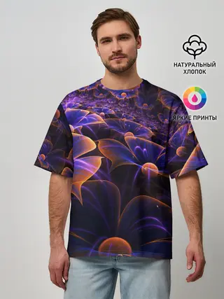 Мужская футболка оверсайз / Цветки во тьме