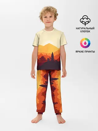 Детская пижама с брюками / Горы закат пейзаж лиса арт