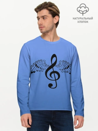 Мужской лонгслив базовый / Скрипичный ключ и крылья ноты