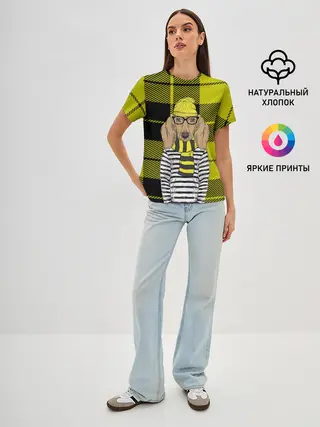 Женская футболка оверсайз / Такса Хипстер