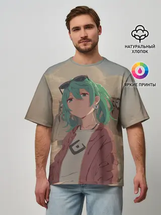 Мужская футболка оверсайз / Мику Хатсуне. ВОКАЛОИД
