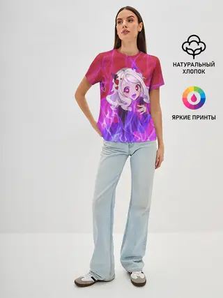 Женская базовая футболка / HELLTAKER. Модеус в огне
