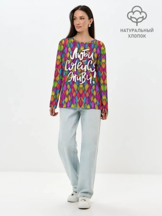 Лонгслив женский. Хлопок / Люби Смейся Живи