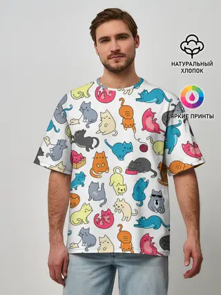 Мужская футболка оверсайз / Кошачья стая