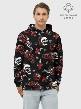 Худи мужской база хлопок / Черепа и розы
