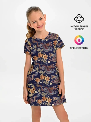 Детское платье / Драконы и цветы