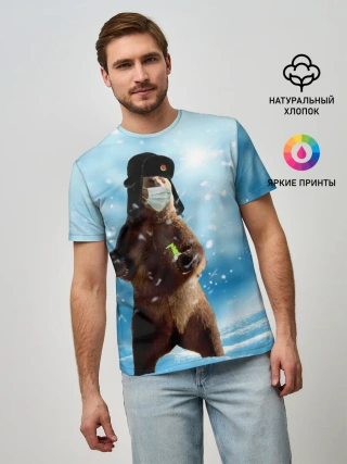 Мужская футболка оверсайз / Зимний мишка в реалиях 2020 г.