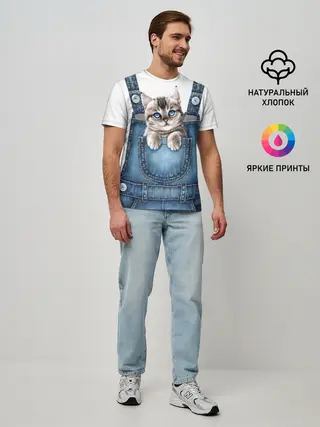Мужская базовая футболка / КОТЕНОК В КАРМАНЕ