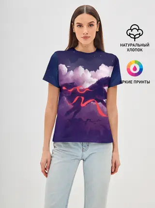 Женская базовая футболка / Лиса бежит по облакам