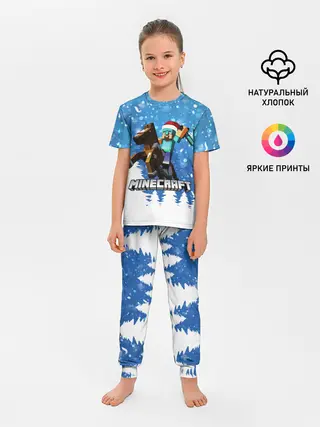 Детская пижама с брюками / Новогодний Манкрафт на коне