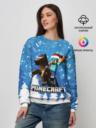 Мужской свитшот базовый / Новогодний Манкрафт на коне