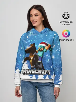 Худи мужской база хлопок / Новогодний Манкрафт на коне