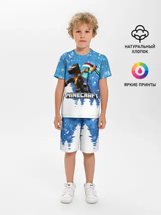 Детская пижама с шортами / Новогодний Манкрафт на коне