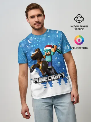 Мужская базовая футболка / Новогодний Манкрафт на коне