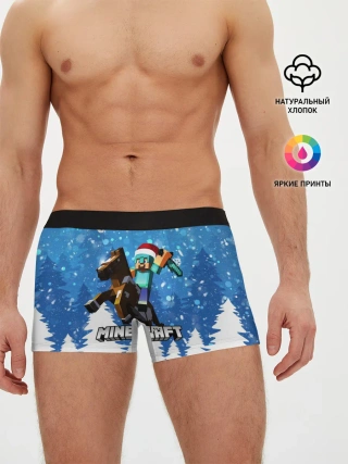 Мужские трусы боксеры / Новогодний Манкрафт на коне
