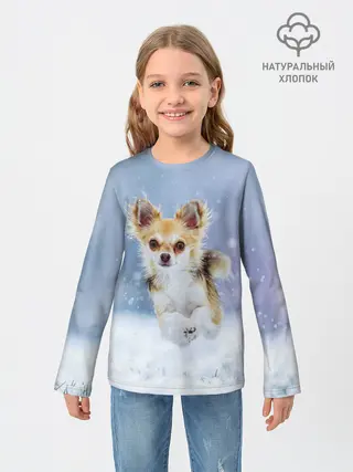 Детский лонгслив / Чихуахуа в снегу