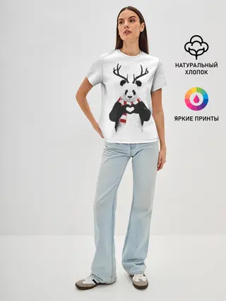 Женская базовая футболка / Новогодний Панда