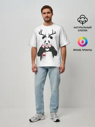 Мужская футболка оверсайз / Новогодний Панда