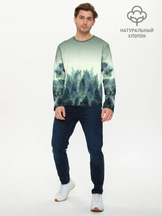 Мужской лонгслив базовый / акварельный лес градиент