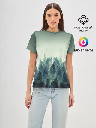 Женская базовая футболка / акварельный лес градиент