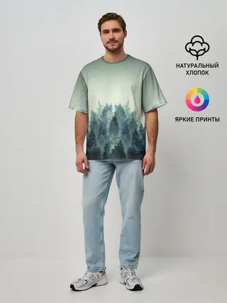 Мужская футболка оверсайз / акварельный лес градиент