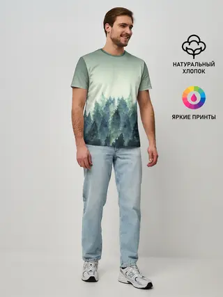 Мужская базовая футболка / акварельный лес градиент
