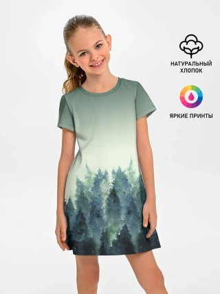 Детское платье / акварельный лес градиент