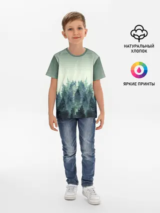 Детская базовая футболка / акварельный лес градиент