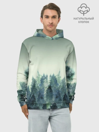 Худи мужской база хлопок / акварельный лес градиент