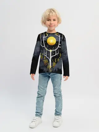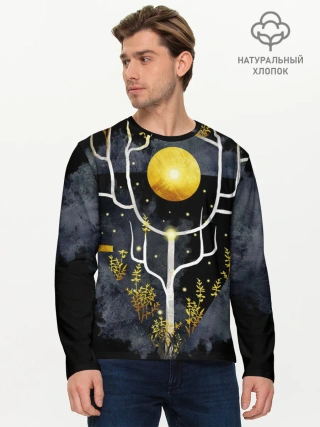 Мужской лонгслив базовый / графит и золото: дерево жизни