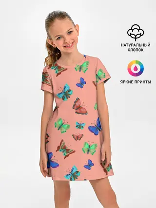 Детская пижама с шортами / Бабочки на персиковом фоне