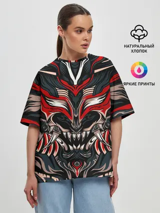 Женская футболка оверсайз / Черный самурай