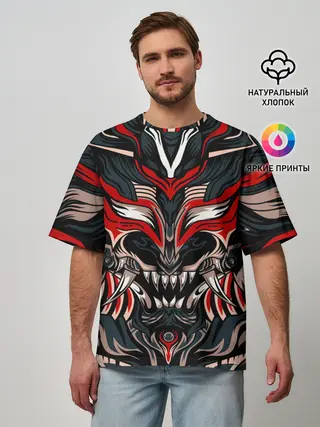 Мужская футболка оверсайз / Черный самурай