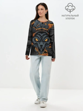 Лонгслив женский. Хлопок / Волк и дракон