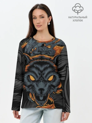 Лонгслив женский. Хлопок / Волк и дракон
