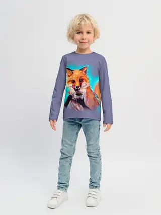 Детский лонгслив / Лиса с кофе