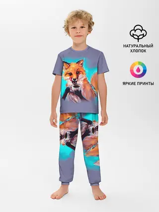 Детская пижама с брюками / Лиса с кофе