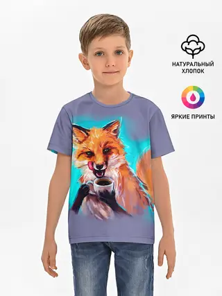 Детская базовая футболка / Лиса с кофе
