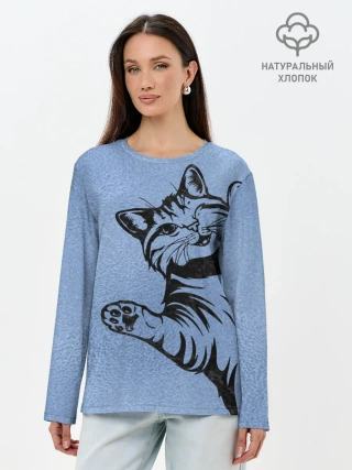 Лонгслив женский. Хлопок / Улыбающийся кот