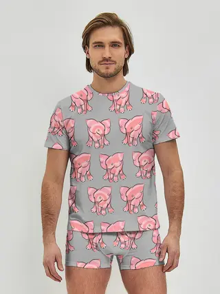 Мужской костюм с шортами / РОЗОВЫЕ СЛОНИКИ ПАТТЕРН