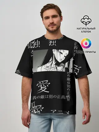 Мужская футболка оверсайз / Черно-белый паттерн с иероглифами