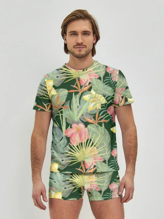 Мужские трусы с футболкой / Тропические растения и цветы