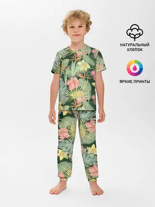 Детская пижама с брюками / Тропические растения и цветы