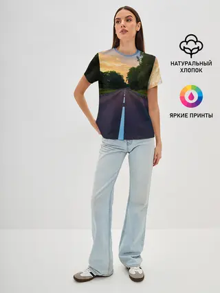 Женская базовая футболка / дорога