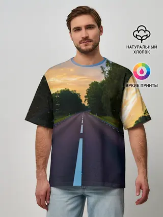 Мужская футболка оверсайз / дорога