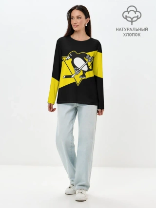 Лонгслив женский. Хлопок / Питтсбург Пингвинз
