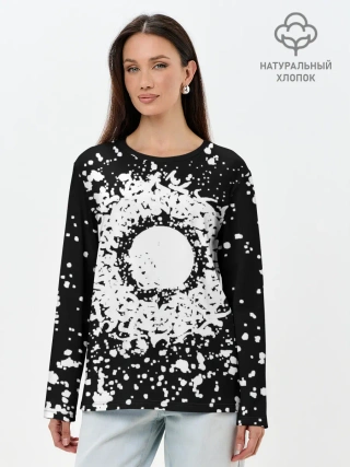 Лонгслив женский. Хлопок / Каллиграфия на чёрном фоне