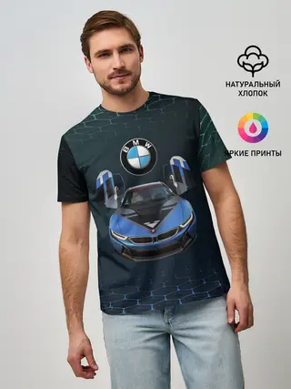 Мужская футболка оверсайз / BMW i8 Turbo тюнинговая.