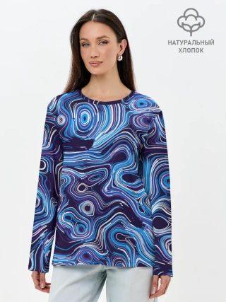Лонгслив женский. Хлопок / Синие линии
